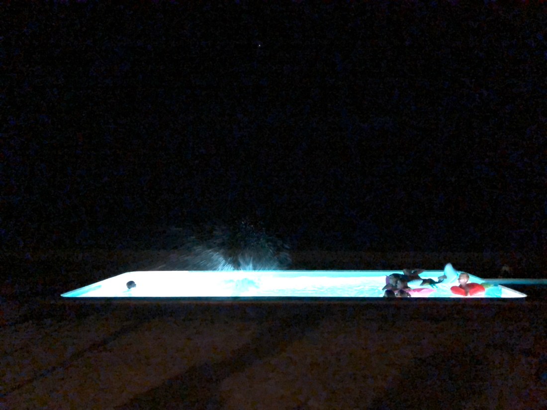 L’effet “ballardian” ou ballardien vient donc de sensations composites: arpenter des boulevards maritimes réels ou imaginaires; assembler des sensations composites et éclatées dans le temps (Palma ici, Calvi là, Miami dans un film, Rio dans un souhait, Blanes dans un roman, Cancùn dans un poème, Tel Aviv dans un projet); d’idées étranges (le destin balnéo-spatial de l’humanité). Ou encore, traverser l’immensité de la mer-nuit à bord d’une piscine fluorescente, extatique, suspendu sous les étoiles filantes, et se sentir foncer à bord d’un véhicule mythique vers les futurs étincelants.