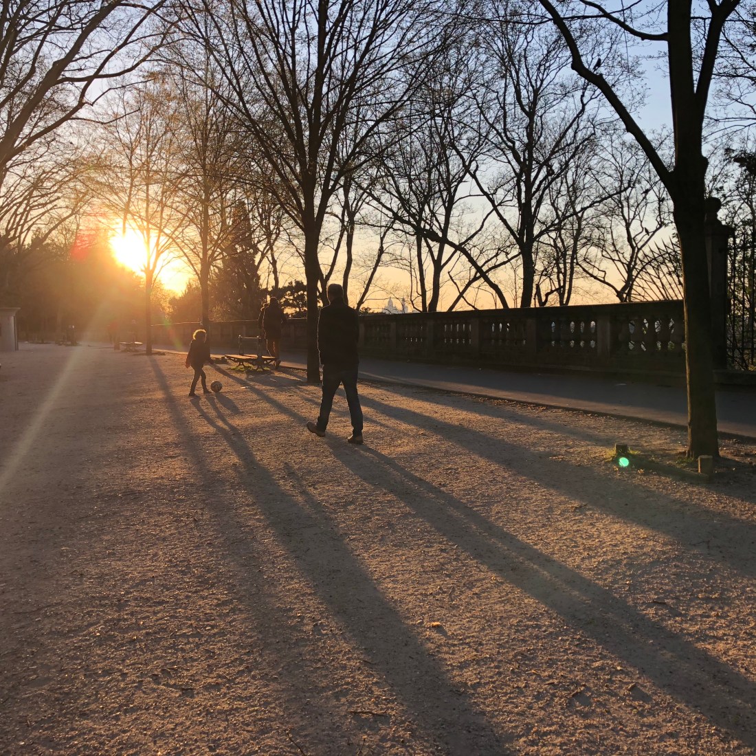 Sept heures du soir. Un soleil énorme se couche derrière la Défense qui ressemble à un décor de carton-pâte, à un totem inutile. Dans le couchant, un avion unique décolle, raide, dressé comme un cigare alcyonien, un messager d’Icare, un vaisseau sur la mer d’or et de soie du ciel. Il se consume ; il brûle comme nous brûlions, tout à son effort de grimper, de monter. Trois petites filles passent en riant et en sautillant et en tournant sur elles-mêmes : l’une a un masque à rayures, l’autre à fleurs, et sur celui de la troisième, on aperçoit des étoiles. On voit aussi les yeux brillants d’excitation et de plaisir entre le masque et la frange. Plus loin, un père et son fils jouent au football sur le terrain désaffecté des boulistes : ils soulèvent une poussière glorieuse traversée par le vecteur horizontal des photons, par le plasma orange du couchant. Plus loin encore, trois garçons asiatiques jouent au ping-pong sur l’une des tables fixées devant le parc, ils se renvoient une balle, orange aussi et de même taille que le soleil, et se figurent en riant que c’est le virus. Une plaque de marbre, que je n’avais jamais remarquée auparavant, honore la mémoire de Robert Endewelt, 1923-2018, fils de Gitla Dynerman et Szmul Endewelt, résistant communiste. Quelle paix ! Quelle paix incroyable, sans nous ! Les enseignes des magasins, de la pharmacie luisent dans le crépuscule, et leurs beaux signes crépitent pour eux seuls, jalousement, ils sont les jalons d’un monde qui nous est désormais inconnu – comme le chant des oiseaux, comme le ronronnement des dernières machines, consciencieuses, appliquées, fidèles, solitaires. Ce calme de début de printemps, ce calme de province et de presbytère, il ne se raccorde pas avec l’idée que nous avons de la ville, nous, derrière nos vitres, derrière nos lunettes. Le monde nous échappe, il s’émancipe, il démissionne. Il cesse d’être le monde, il devient l’Ouvert, le Monstre, le Cyclope, la Bête.