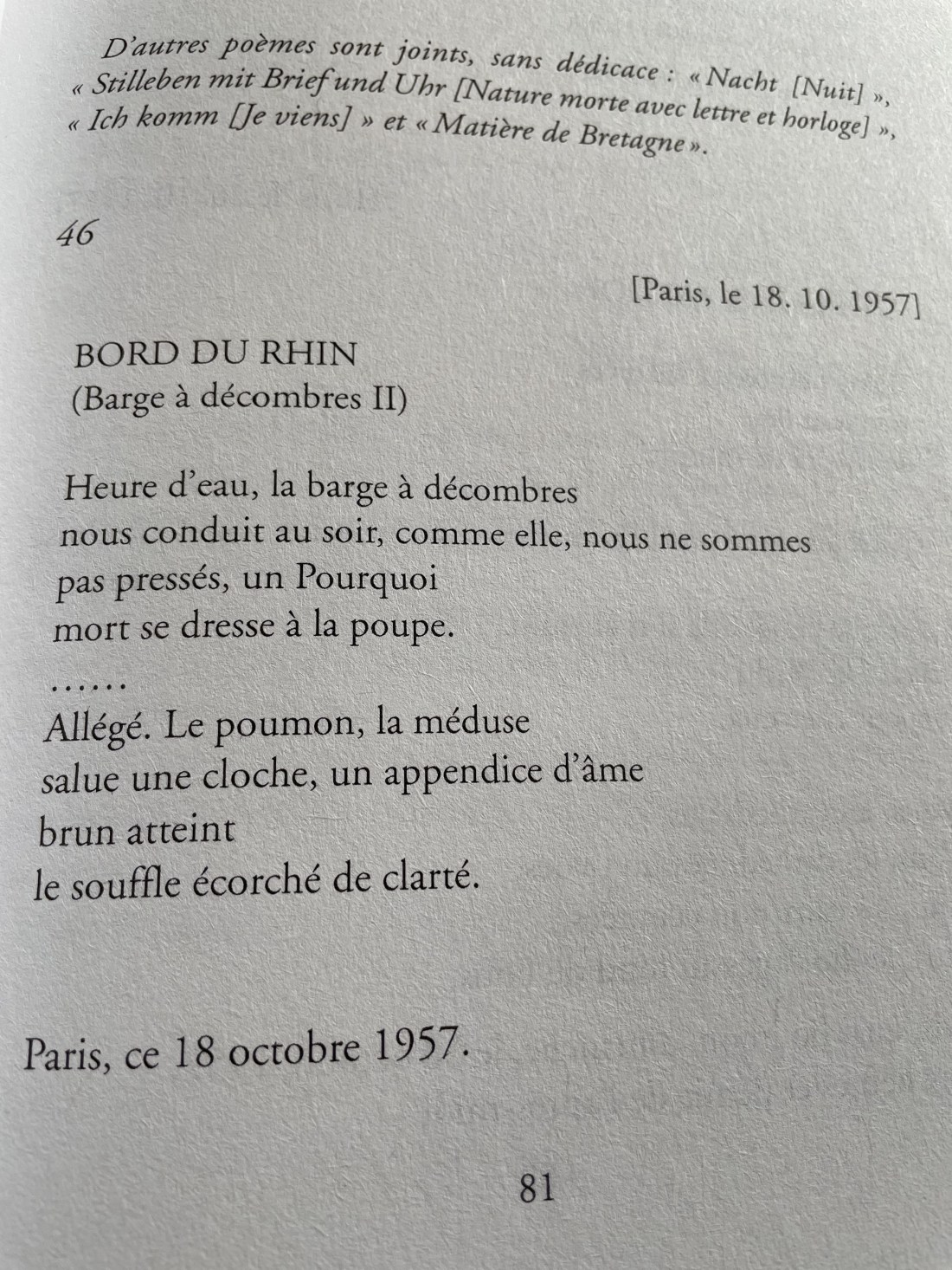 Celan à Ingeborg Bachmann, (Paris,) 2. XI.[19]57