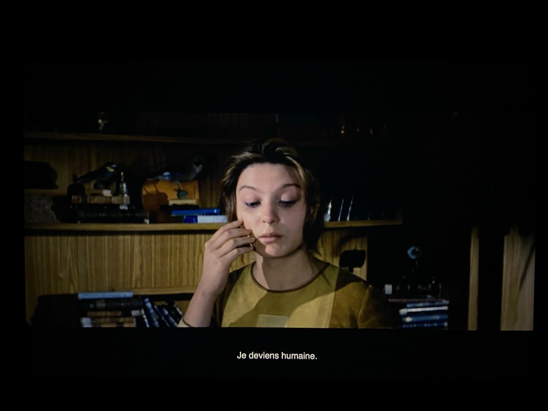 L’océan de Solaris scanne les âmes qui flottent au-dessus de lui dans la station spatiale. Ou peut-être ce sont elles qui émettent vers lui des encéphalogrammes, des signaux, des pings dans le noir, des désirs, des rêves. Et la réponse, le cadeau est terrible : Solaris donne ce qu’on désire et ce qu’on redoute le plus. Pour Kelvin, c’est Khari, sa femme morte dix ans plus tôt, suicidée. Mais ce n’est pas vraiment elle, ni vraiment ‘ça’. C’est la projection, le désir, le fantasme de Khari par Kelvin. Les plans de Kelvin en train de dormir sont effrayants parce qu’on sent la mécanique de l’inconscient en train de vrombir, les désirs, passagers clandestins des rêves, qui volent, qui cavalent à l’encontre de la conscience. ‘Ce n’est pas un problème de folie — la mystérieuse pathologie qui frappe les occupants de la station —, c’est un problème de conscience’, dit le Dr Guibarian avant de disparaître. Chacun a le sien – Wunscherfüllung -, à lui destiné, adapté, dans sa cellule spatiale. Tous lui envient celui de Kelvin : l’amour. Tout explose tout de suite, toute vraissemblance, toute finalité, toute logique, toute cause. Il n’y a plus de pourquoi à cette mission et tous luttent pour se parler encore, pour se considérer encore les uns les autres, pour faire société — car plus rien n’a d’intérêt que ce que l’océan a mis sous leurs yeux. Les ondes de la psyché assouvies, les désirs qui rencontrent leur réalisation sans frein dans cette étrange matière visqueuse, fluide, omnipotente, plastique, sans limite.
